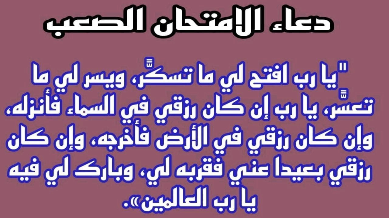 عندما يجد الطالب الامتحان صعبًا يتعين عليه اللجوء لله عز وجل بذكر أدعية للامتحانات الصعبة وترديد دعاء النجاح في الامتحان ومن الصيغ المختلفة لدعاء الامتحان الصعب قصير جدًا ما يلي: